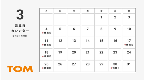 3月定休日のご案内